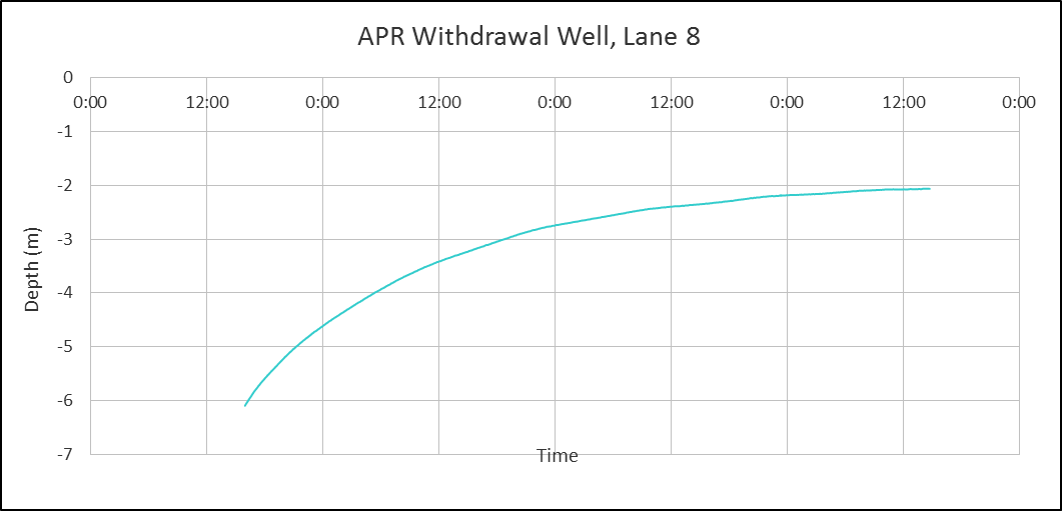 The first withdrawal well was constructed on Phase 2, Lane 8 of APR. The well has a diameter of 5 ft and a depth of 25 ft. The volume of the well is around 12,000 L. Here are some photos of the withdrawal well.