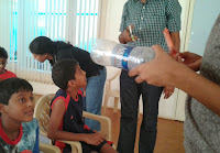 tippy tap that was made previously. Washing hand under it was a fun