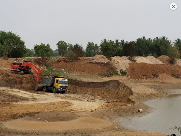 Desilting of the lake bed, and building bunds all around the lake being carried out