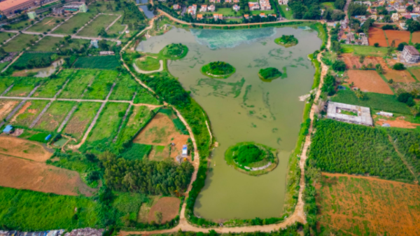 Islands have been created in the lake using the mud from the lake. Ficus, fruit and other trees have been planted on the island.