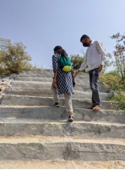 Steps from the road leading to the bund and Walkway on the bund at Nanjapura lake