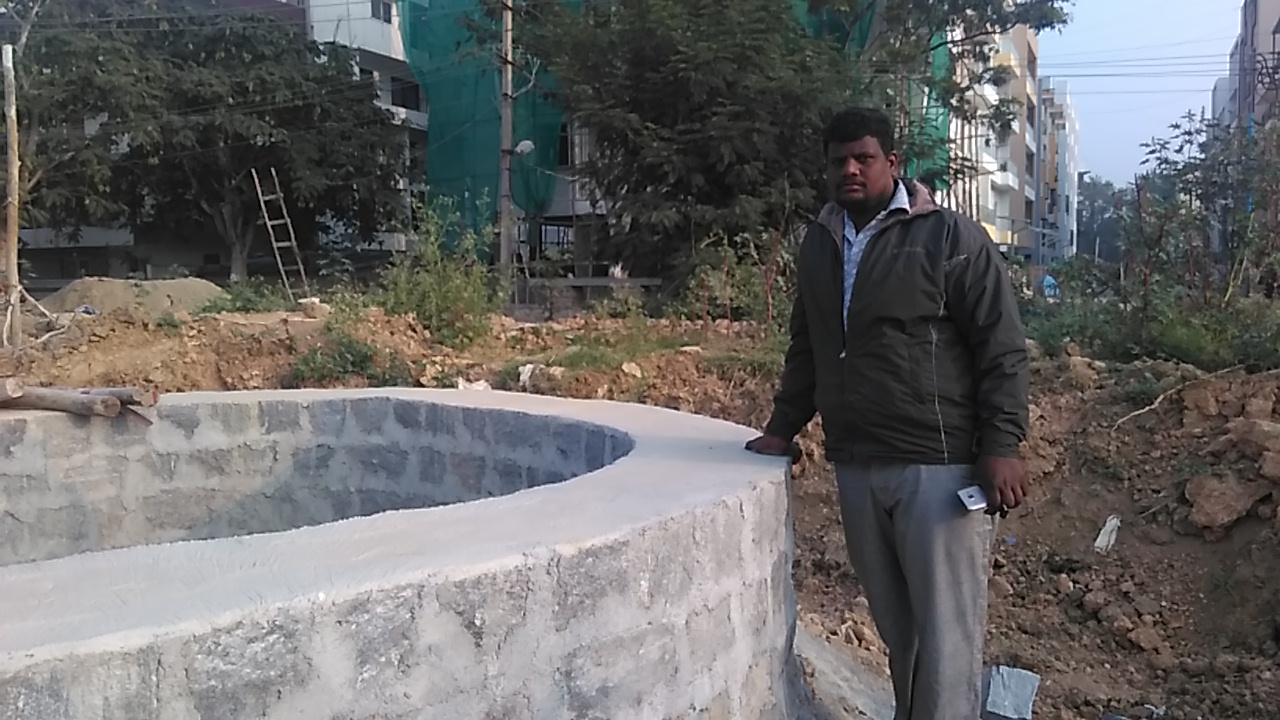 Most borewells along Sarjapura Road do not yield much water. A new apartment opposite Kaikondrahalli Kere is also struggling for water as their borewells run dry. The builder decides to revive an old open well in his property. The well is 18ft in diameter and 40ft deep and has been fully closed with mud. Pedanna the well digger is called in. Alongwith his team Pedanna excavates all the 40ft of mud manually. They strike water at about 20ft below ground level. The water has to be pumped out as they continue to dig. The well is now completely excavated and holds about 20ft of water. Every day about 100,000 – 140,000 litres of water is pumped out from the well and the well fills up again the next day. The water seems to be of reasonable quality. It is treated and used by the apartment
