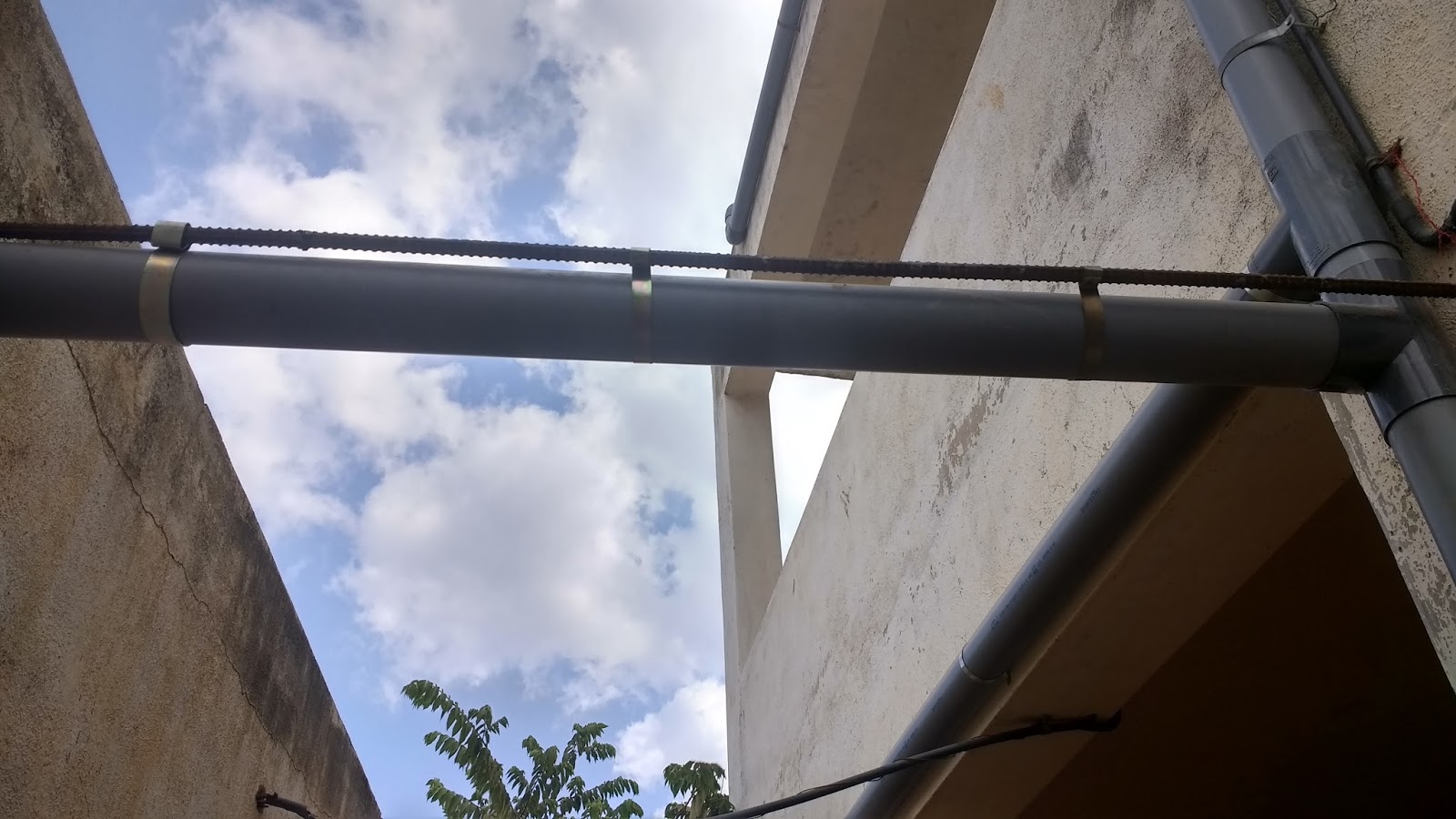 The school has an existing sump of ~10KL capacity. Earlier thought was to connect the rooftop pipes directly to the existing sump via a filter. However, the school was a little skeptical about rainwater for drinking. Hence, a suggestion was made to first connect the rooftop rainwater pipes to the rainbarrel via the filter with an overflow option given to the existing sump. The rainbarrel is provided with a tap. Thus, in some exceptional cases when the rooftop water quality is not upto the mark, the overflow connection to the sump can be cut off and the mixing is stopped.