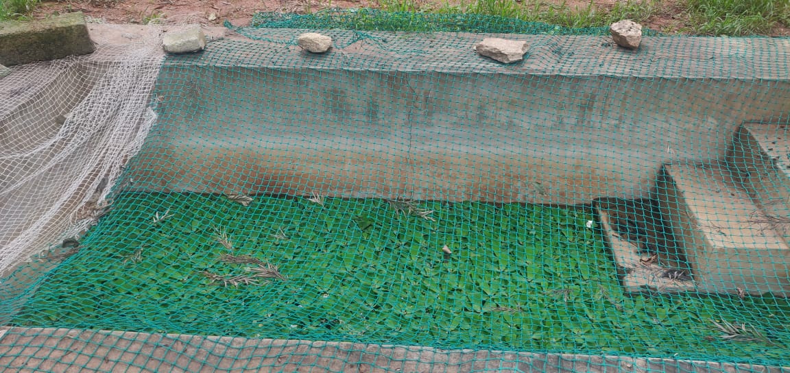 Residents Welfare Association is growing water Cabbage in a small structure similar to a step well to purify the water as they have introduced fishes into it. There was one single water cabbage which grew up to cover the entire pond.