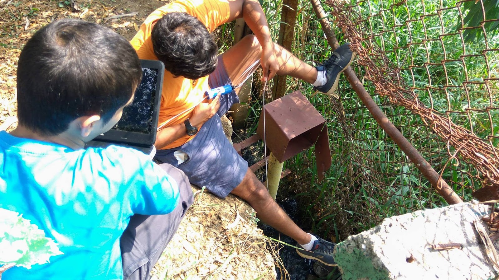 The water level sensor was also installed at the same time as the DO sensor (Feb 16). It was installed in the 2 sewage inlets of the lake. This is one of the inlets.